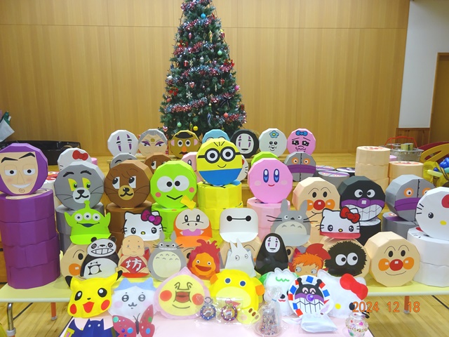 今日は子どもたちや先生方が作った物をお買い物。キラキラモールリース、キャラクル、トトロドーム・コロコロチェアー・エアーDEボンボン・フラッピング・小物入れ・クッションなどなど。。。おうちに沢山のお土産を持って帰りました。