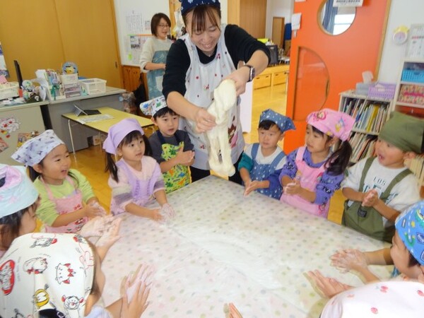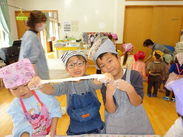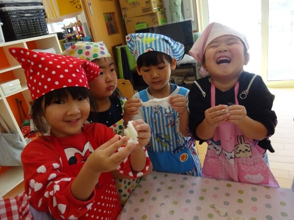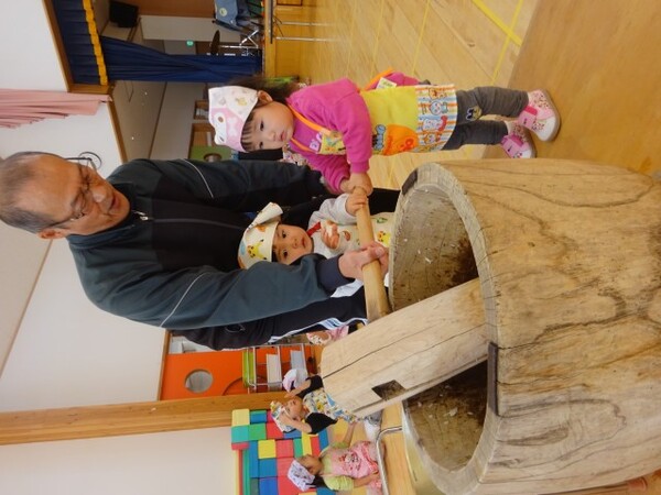 | もちつき会を行い、子どもたちは「よいしょ!」の掛け声に合わせて元気に参加しました。つきたてのおもちに触れ、伝統行事の楽しさを味わう時間となりました。 |
