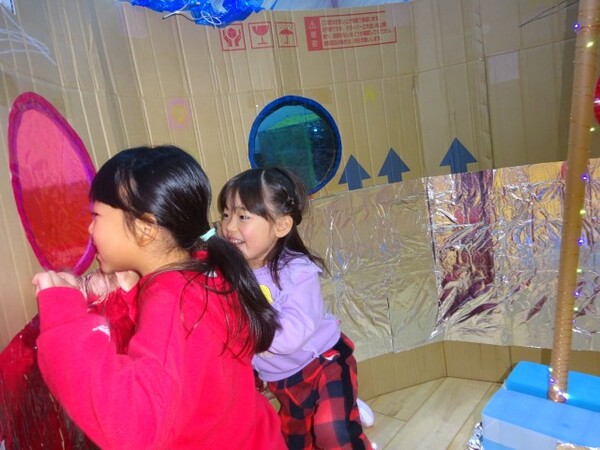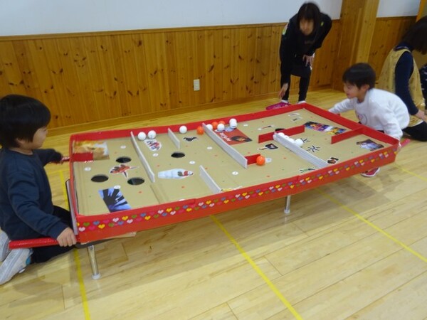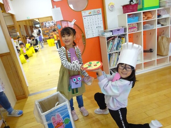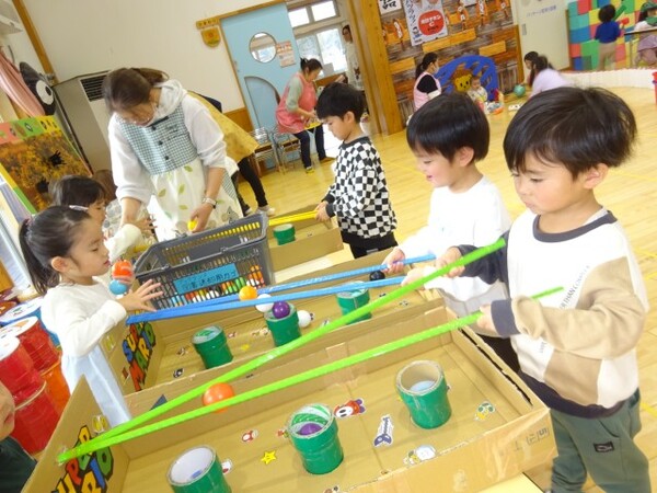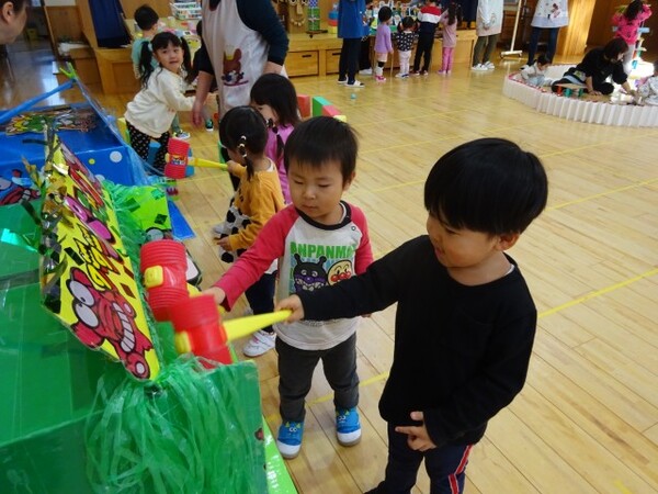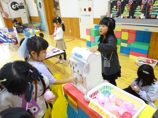 | お店屋さんごっこ2日目も、子どもたちは品物を選んだり売ったりしながら、やり取りを楽しんでいました。ゲームも楽しみながら参加し、活気あふれるひとときとなりました。 |