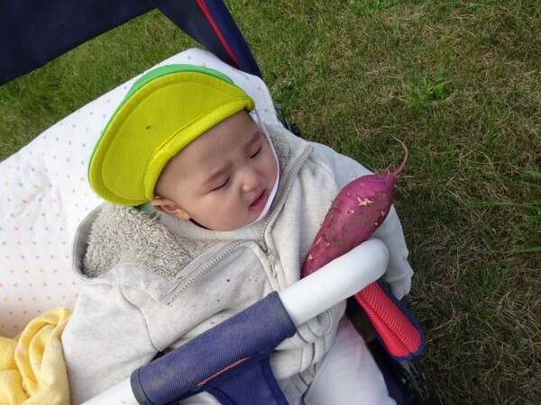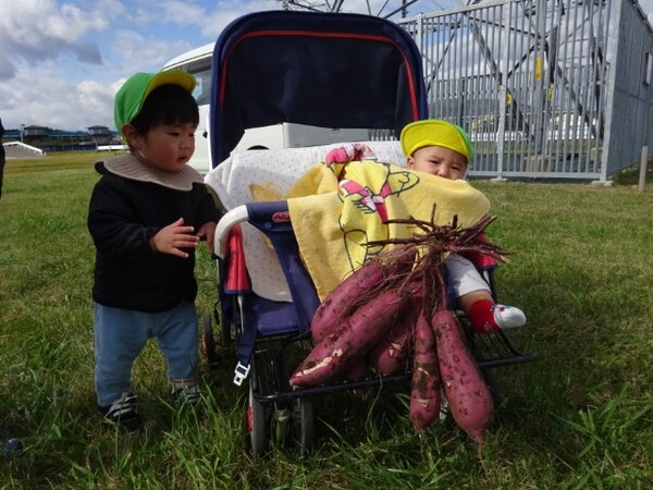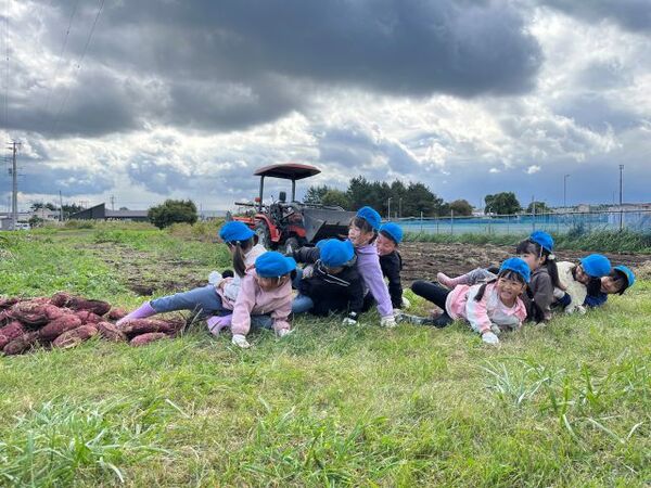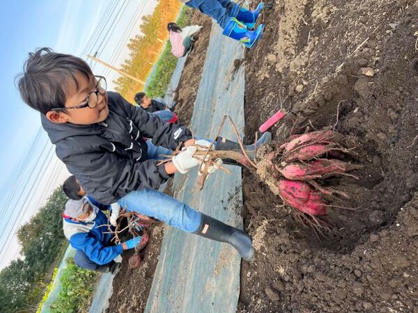 | さつま芋掘りを行い、子どもたちは土の中から大きなお芋を見つけて大喜びでした。収穫の楽しみを味わいながら、自然にふれる貴重な時間となりました。 |