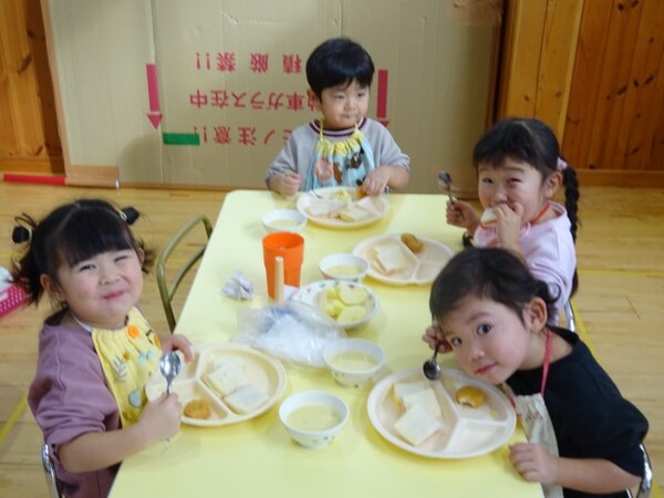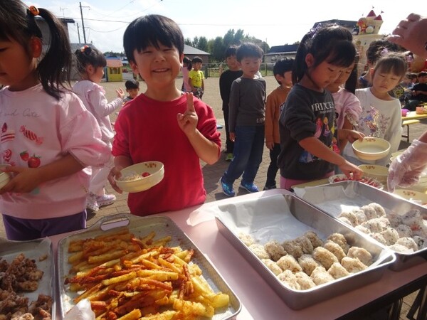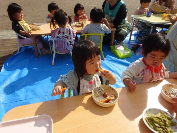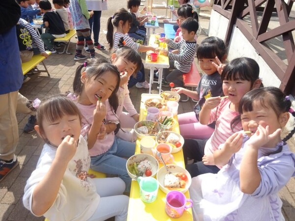 | 野外パーティーでは、青空の下で食事を楽しみ、子どもたちの笑顔がたくさん見られました。みんなで過ごす、特別で楽しいひとときとなりました。 |