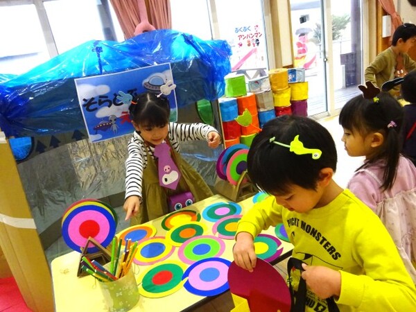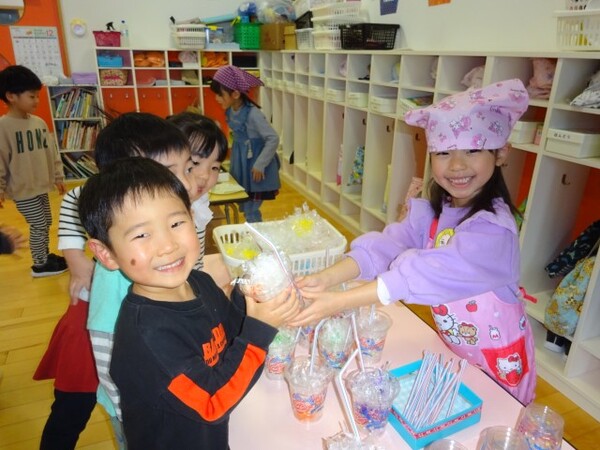 | お店屋さんごっこ1日目は、子どもたちがお客さんや店員になりきってやり取りを楽しみ、園内がにぎやかで笑顔いっぱいの時間となりました。 |