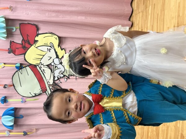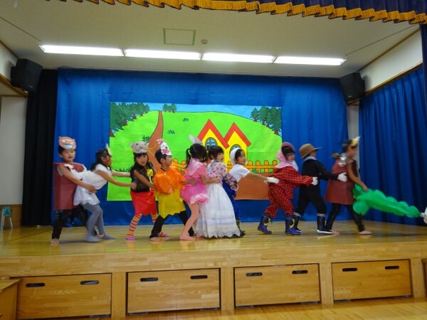 | お遊戯会では、子どもたちが練習の成果を発揮し、歌や踊りを元気いっぱい披露しました。舞台に立つ姿はとても輝いており、温かい拍手が広がる素敵な時間となりました。 |
