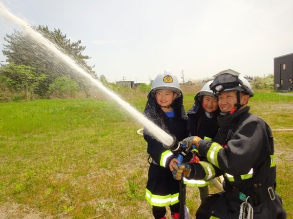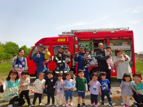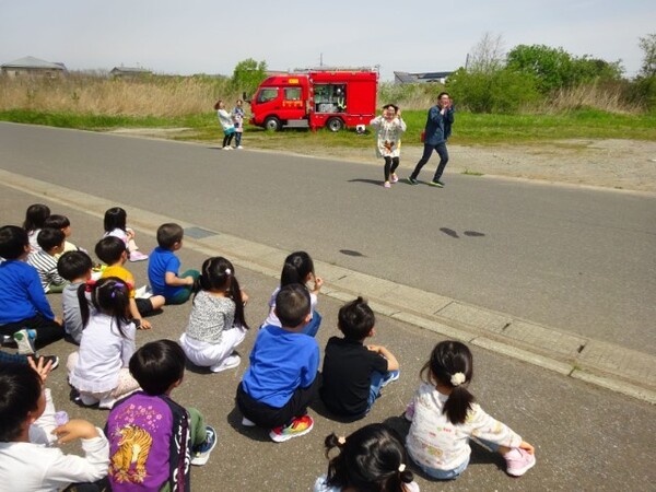 | 消防訓練を行い、子どもたちは職員の話をよく聞きながら落ち着いて避難することができました。日頃の練習の大切さを感じる時間となりました。 |