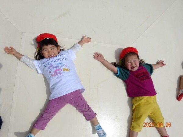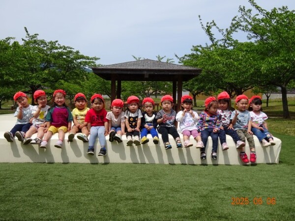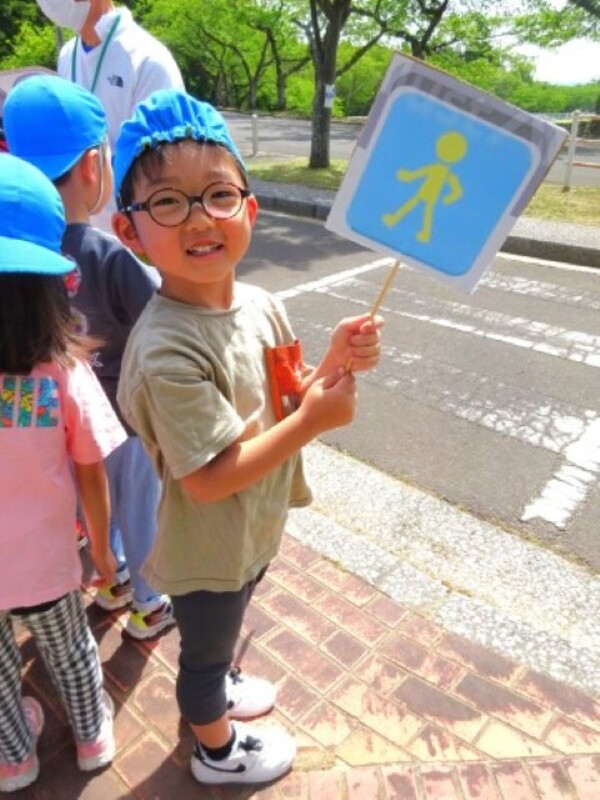 | 園外保育で未満児は金谷公園に、3歳以上児は運動公園交通広場へ行き、自然や遊具、交通ルールに親しみながら、元気いっぱい活動をしました。 |