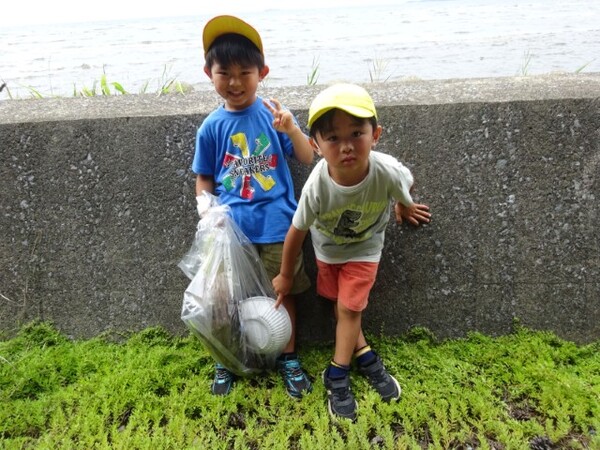 | ひまわり組が海浜清掃に参加し、岸壁や防風林内のごみ拾いをしながら環境を大切にする気持ちを育むことができました。みんなで力を合わせて、海をきれいにする活動に取り組みました。 |